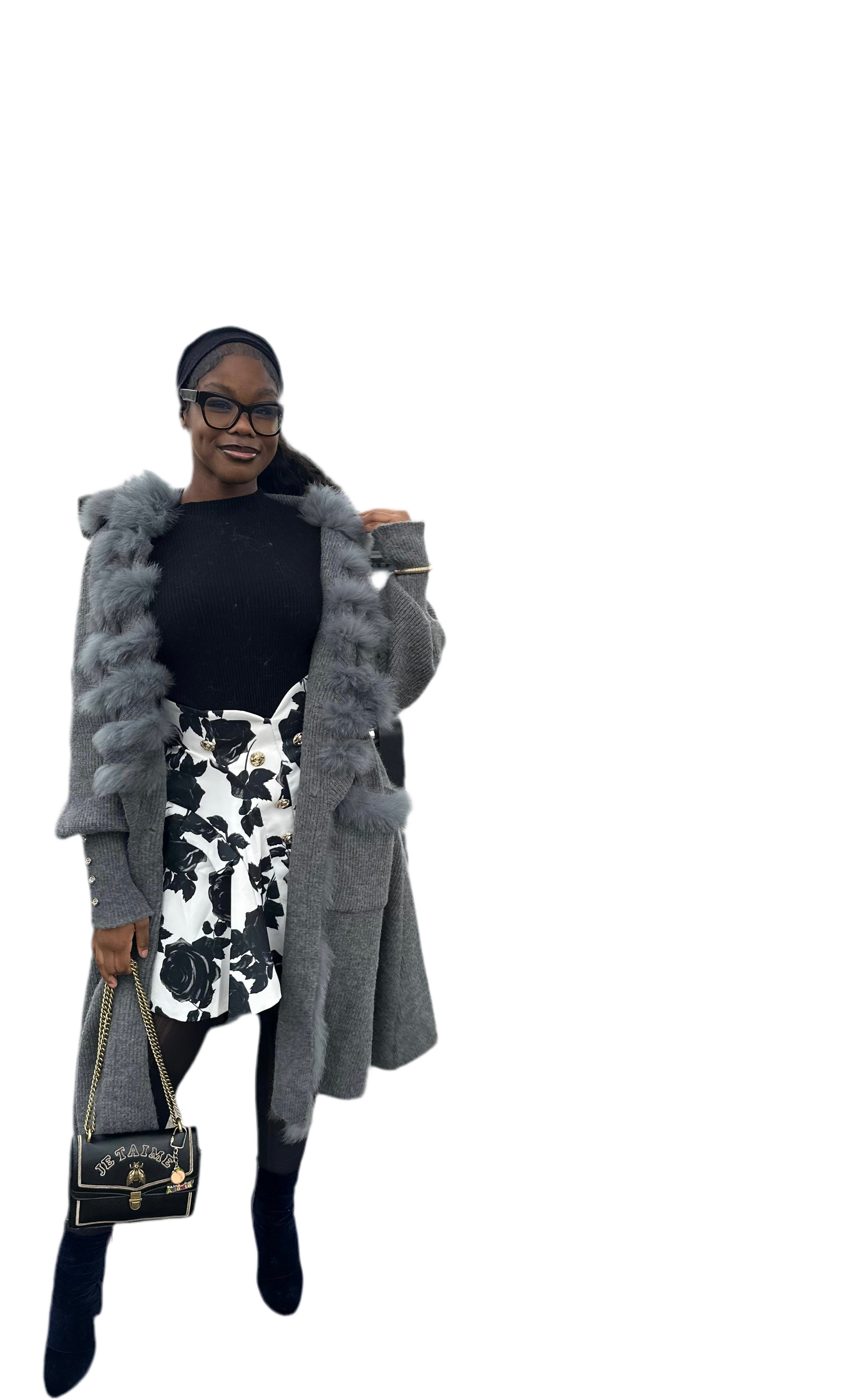 I ALREADY ATE Real Fox Fur + Knitted Cardigan